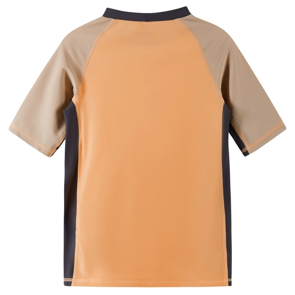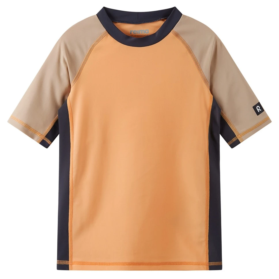 T-shirt dziecięcy Uiva od firmy Reima to idealny wybór na słoneczne dni, pływanie i aktywny wypoczynek na świeżym powietrzu. Wykonano go z rozciągliwego materiału SunProof+ jersey, który zawiera 80% poliamidu z recyklingu i 20% elastanu. Dzięki temu T-shirt jest lekki, elastyczny, wygodny i szybko schnie. Materiał zapewnia wysoką ochronę UV 50+ zgodnie z normą EN 13758-1 +A1 i skutecznie chroni skórę przed promieniowaniem UVA i UVB.