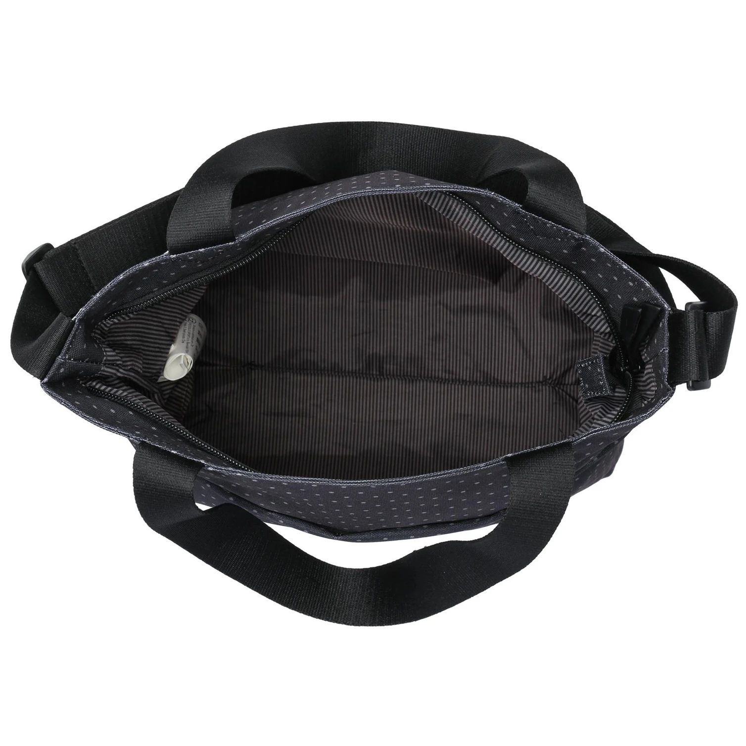 Dla łatwej organizacji torba ma również zewnętrzną kieszeń na zamek, w której można przechowywać rzeczy, które trzeba szybko znaleźć, oraz wewnętrzną kieszeń na zamek do bezpiecznego przechowywania kosztowności. Regulowany pasek na ramię umożliwia wygodne noszenie na ramieniu lub na krzyż, a solidne uchwyty z taśmy dają możliwość noszenia jej również w ręce.