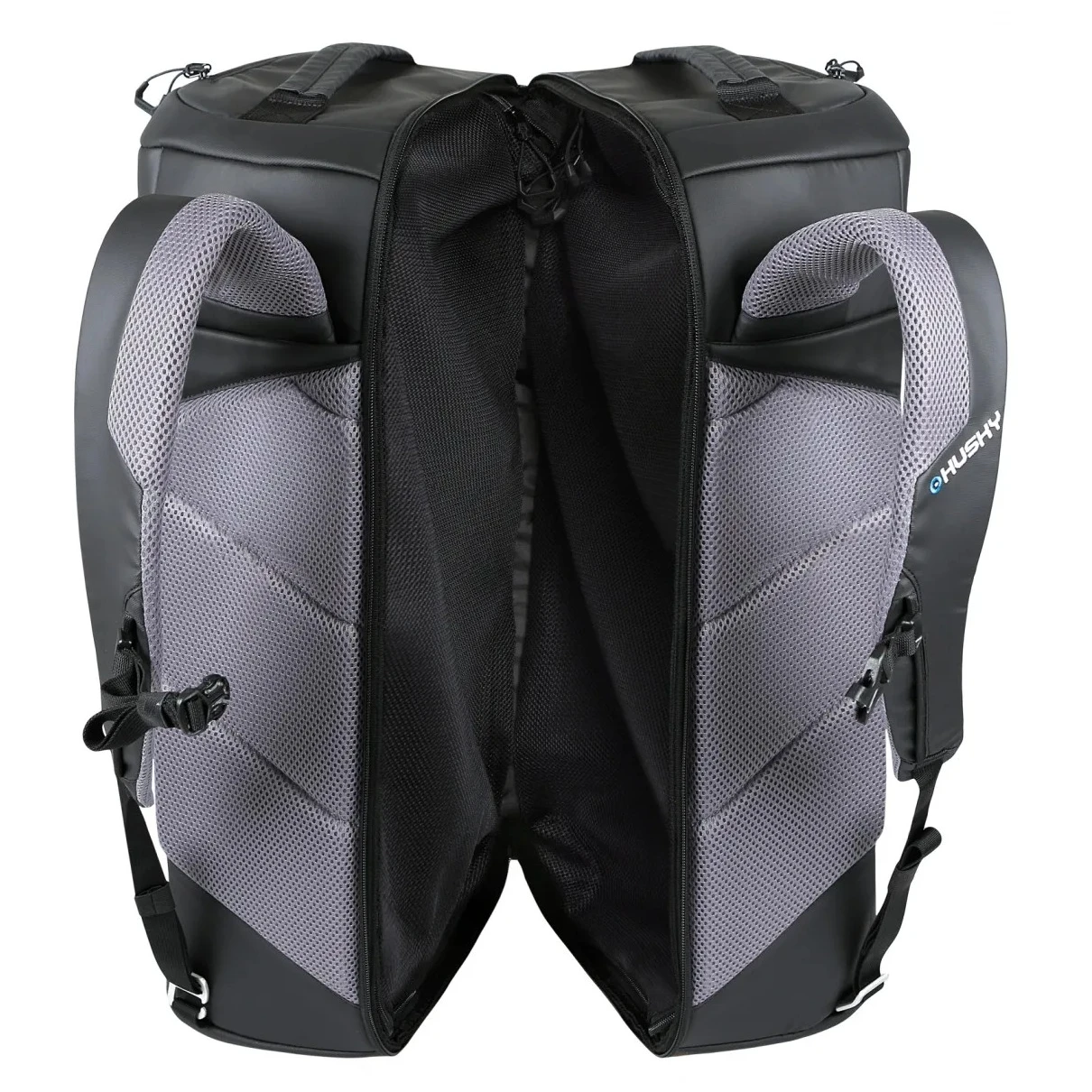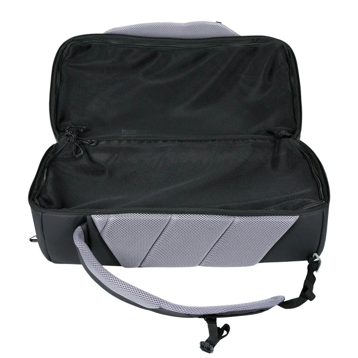Torba została wykonana z wytrzymałego nylonu 600D z wodoodporną powłoką TPU, a komfort noszenia zapewnia wzmocniony system nośny AirMesh. Paski na ramiona można schować podczas noszenia jako klasyczną torbę, a system nośny uzupełniony paskiem piersiowym umożliwia wygodne przenoszenie nawet podczas dłuższych podróży. Dwie główne komory mają szerokie wejście na zamek błyskawiczny, co ułatwia pakowanie i dostęp do Twoich rzeczy.