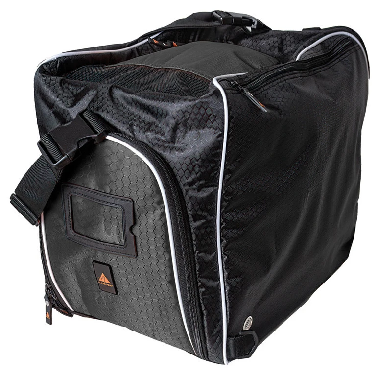 Sportowa torba susząca Fire Boot Bag marki Alpenheat doskonale nadaje się do suszenia butów, butów narciarskich, kasków, rękawic i innego sprzętu. Jest zasilana z gniazdka lub adaptera samochodowego, dzięki czemu w drodze na stok ogrzeje buty narciarskie lub w drodze z pracy wysuszy buty robocze. Otwory wentylacyjne w dolnej części zasysają zimne powietrze, a ogrzane wydostaje się przez otwory w górnej części, co skraca czas schnięcia. Wewnątrz znajduje się oddzielna część na kask lub rękawice, a na zewnątrz kieszeń na akcesoria. Torba ma odpinany pasek na ramię i paski na plecak.