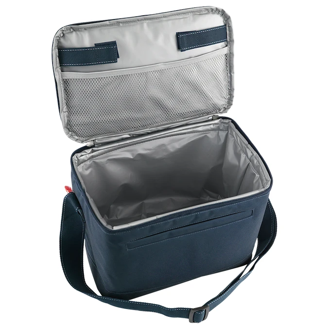 Wykonany jest z wysokiej jakości materiału poliestrowego, wewnętrzny materiał to podszewka PEVA ze zgrzewanymi szwami, która jest wodoodporna i łatwa do czyszczenia. Duża górna pokrywa może być otwierana z trzech stron, zapewniając doskonały dostęp do wnętrza. Z pojemnością 5 litrów w komorze głównej i dodatkową przestrzenią w przedniej kieszeni, możesz przygotować piknik dla rodziny lub przyjaciół. Wewnątrz klapy znajduje się siatkowa kieszeń na lód. Posiada regulowany pasek, który umożliwia noszenie torby zarówno w dłoni, jak i na ramieniu. Gdy jej nie potrzebujesz, torbę można złożyć w kompaktowy pakiet dzięki paskom kompresyjnym.