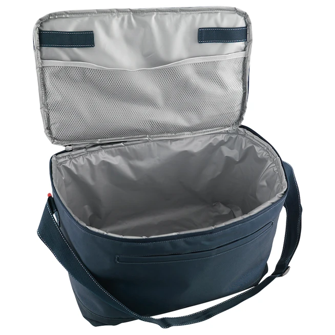 Wykonany jest z wysokiej jakości materiału poliestrowego, wewnętrzny materiał to podszewka PEVA ze zgrzewanymi szwami, która jest wodoodporna i łatwa do czyszczenia. Duża górna pokrywa może być otwierana z trzech stron, zapewniając doskonały dostęp do wnętrza. Z pojemnością 5 litrów w komorze głównej i dodatkową przestrzenią w przedniej kieszeni, możesz przygotować piknik dla rodziny lub przyjaciół. Wewnątrz klapy znajduje się siatkowa kieszeń na lód. Posiada regulowany pasek, który umożliwia noszenie torby zarówno w dłoni, jak i na ramieniu. Gdy jej nie potrzebujesz, torbę można złożyć w kompaktowy pakiet dzięki paskom kompresyjnym.