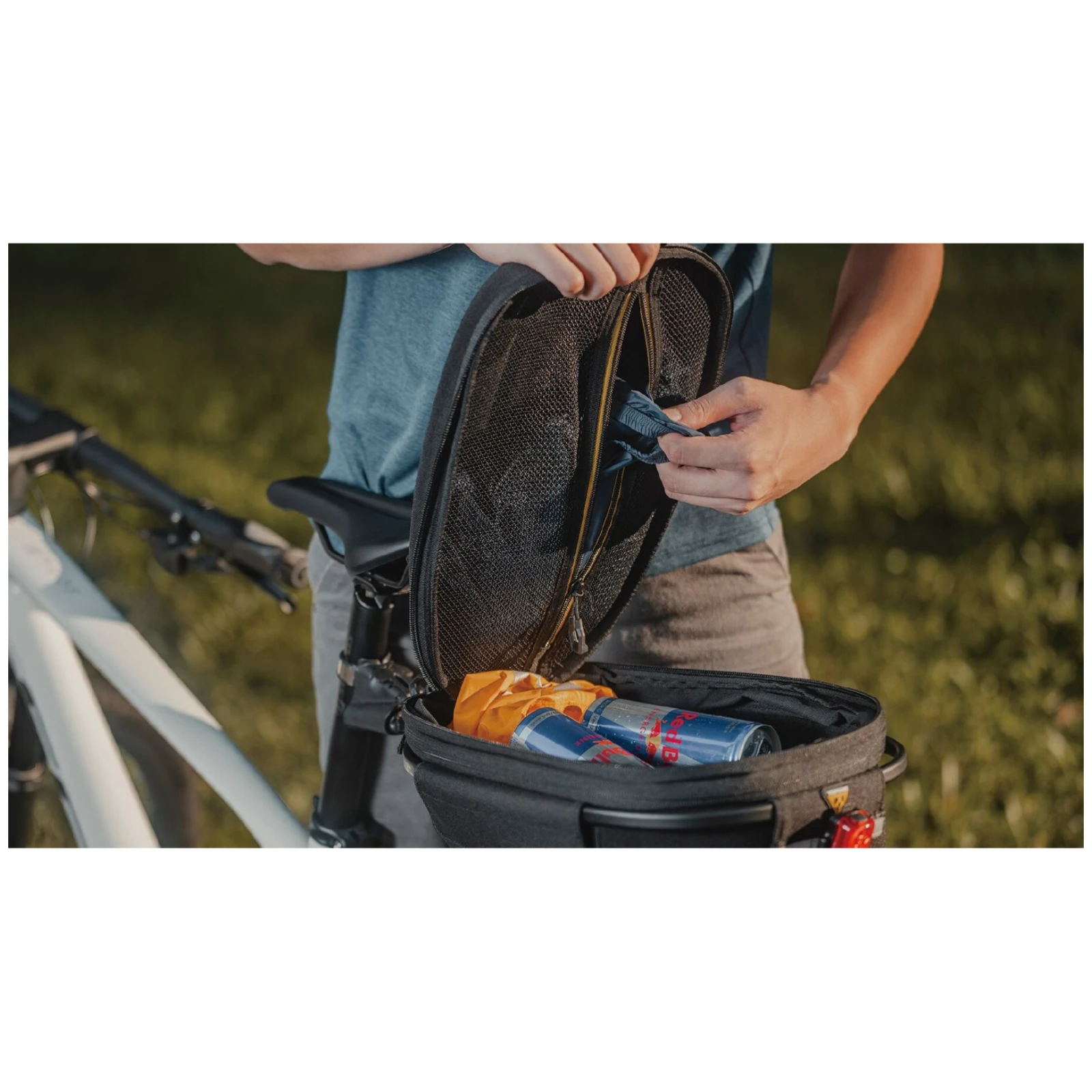 Główna komora jest wystarczająco duża, aby pomieścić narzędzia, zapasową dętkę, aparat fotograficzny lub rzeczy na piknik. Całkowita pojemność torby wynosi 9,7 l. Torebka jest wykonana z materiału 600 Denier i pianki EVA, dla zwiększonego bezpieczeństwa jest również wyposażona w odblaskowy pasek 3M i pętelkę do mocowania świateł RedLite™.