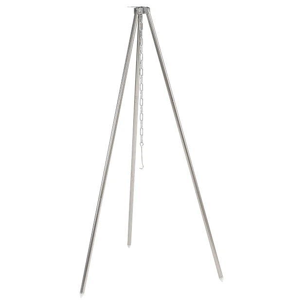 Wykonany jest z lekkiego i wytrzymałego aluminium. Po rozłożeniu można umieścić ją bezpośrednio nad ogniem dzięki stabilnym nóżkom. Spiczaste kolce w dolnej części są stabilne na każdym podłożu, w tym miękkim. Trójnóg wykorzystuje system Click-lock do rozkładania i składania, dzięki czemu jest gotowy do użytku w ciągu kilku sekund. Następnie można ustawić wymaganą wysokość gotowania, regulując długość łańcucha. W zestawie znajduje się praktyczny futerał transportowy.