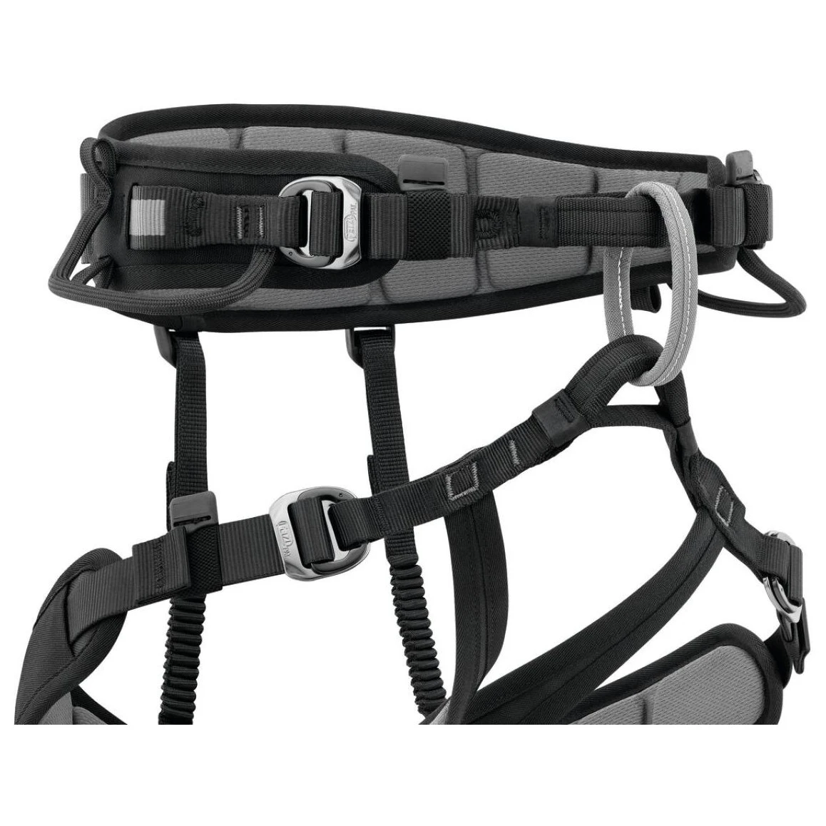 - Pas jest zwężony w okolicy bioder dla większego komfortu i łatwości poruszania się podczas wspinaczki i pracy na ziemi
