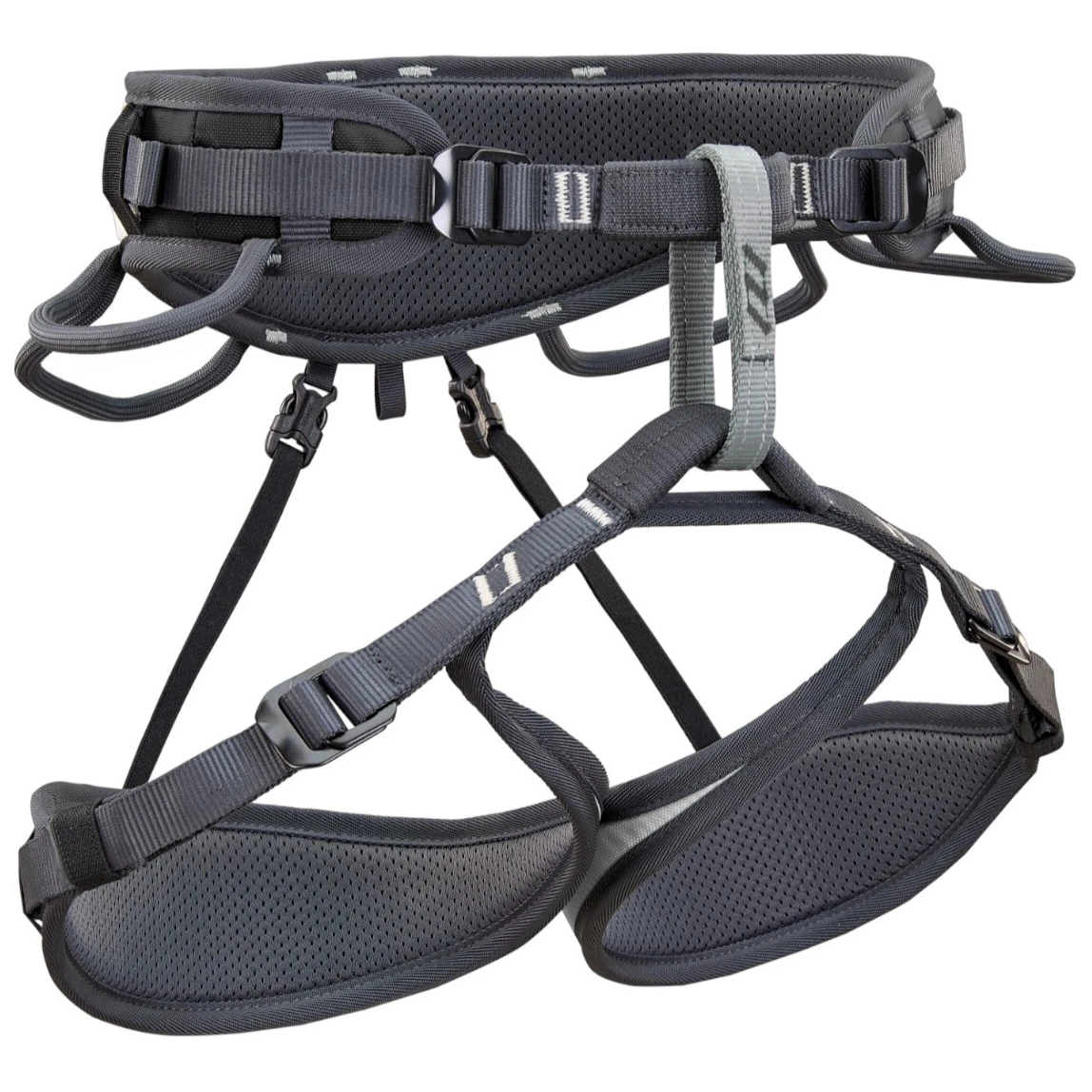 Cztery regulowane klamry pozwalają na precyzyjne dopasowanie pasa biodrowego i nogawek do sylwetki oraz warstw odzieży. Ergonomiczny pas biodrowy i nogawki zapewniają równomierne rozłożenie obciążenia i komfort podczas zwisu, nie ograniczając ruchów.