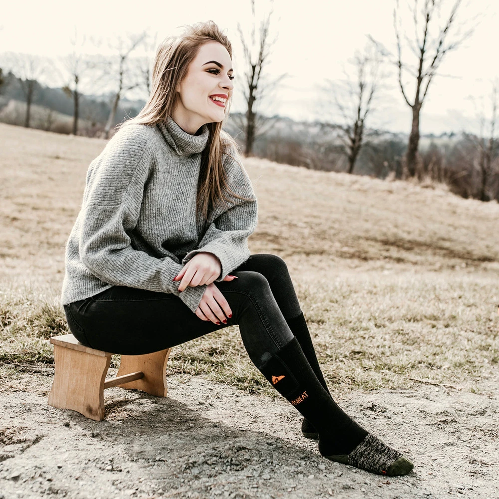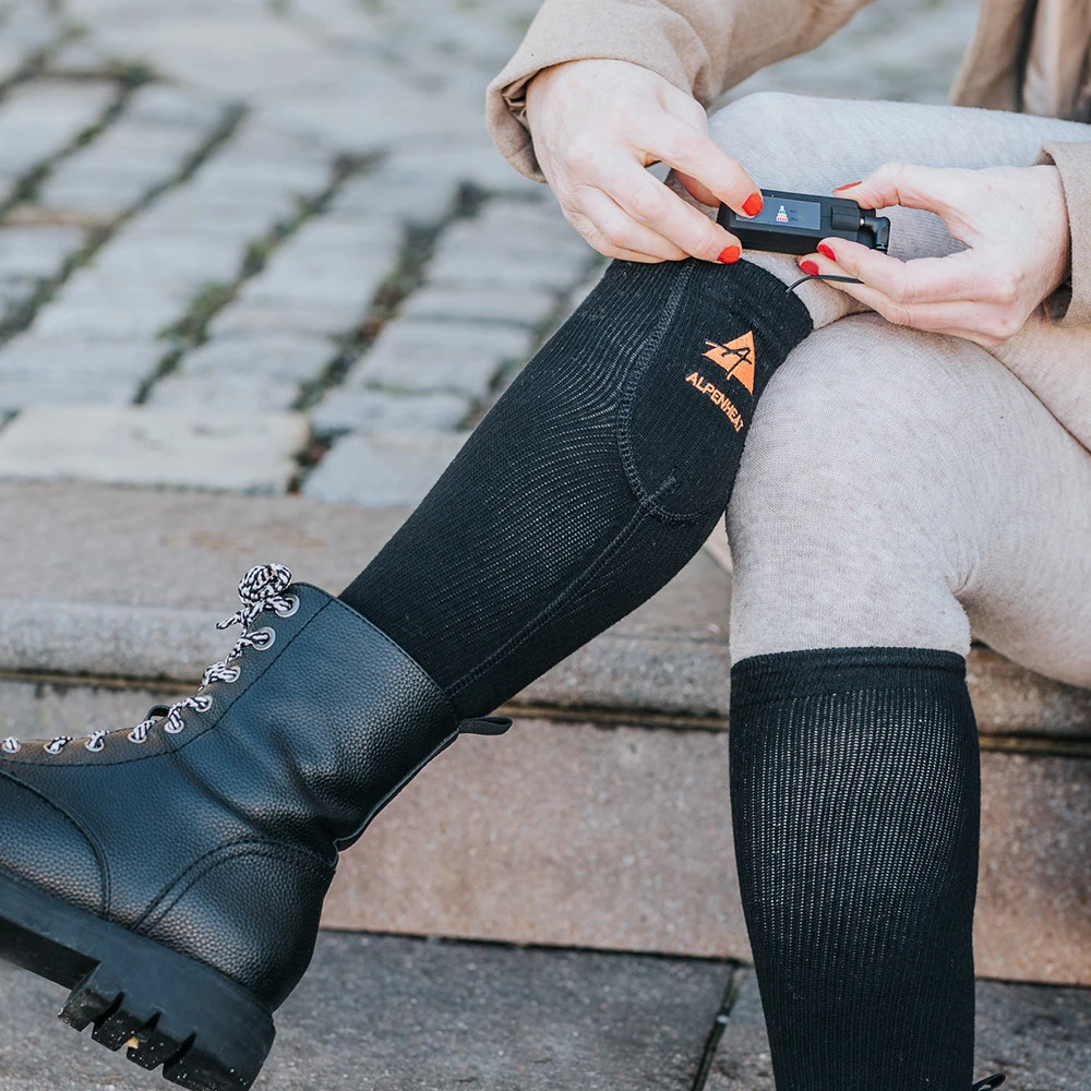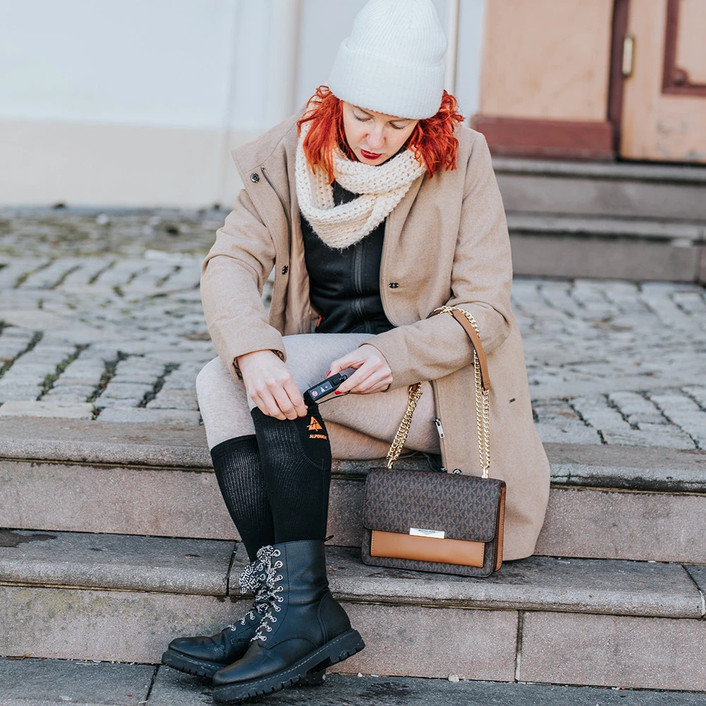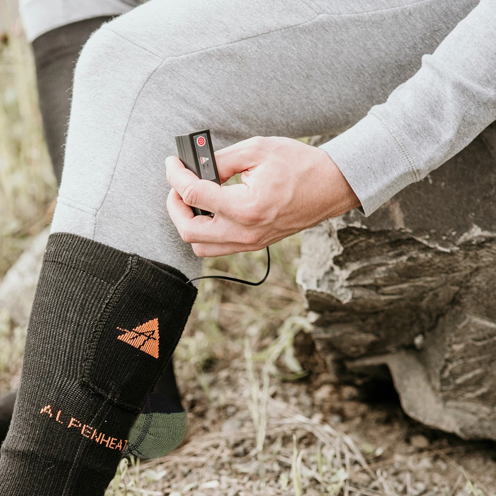 Podgrzewane skarpety Fire Wool Socks marki Alpenheat są idealne na chłodne dni. Zawierają domieszkę wełny merino, która zapewnia optymalną termoregulację. Domieszka włókien miedzianych działa antybakteryjnie. Element grzewczy z włókien węglowych jest umieszczony pod palcami i zasilany kompaktowym akumulatorem litowo-jonowym, który znajduje się w górnej części skarpety. Możesz ustawić trzy poziomy ogrzewania w zależności od aktualnych potrzeb. Po jednym naładowaniu skarpety grzeją 5-10 godzin. Ponowne naładowanie trwa 6 godzin za pomocą kabla USB.