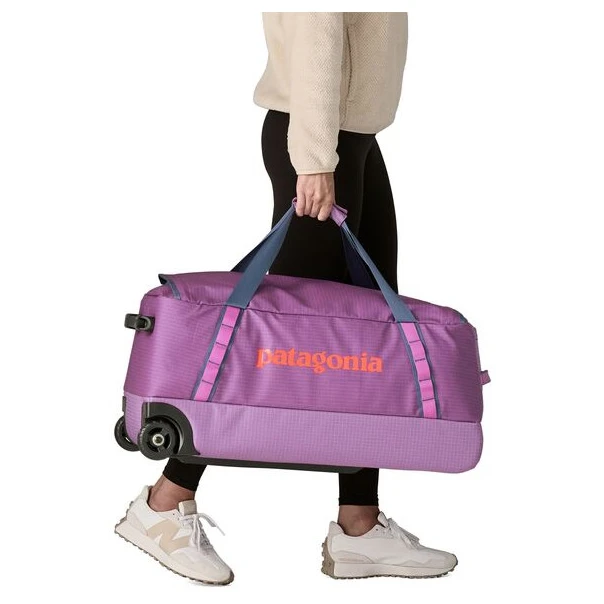 Patagonia Black Kije Wheeled Duffel 70L to solidna, ale kompaktowa walizka wykonana z wytrzymałego materiału ripstopwykonanego w 100% z poliestru pochodzącego z recyklingu. Zewnętrzne wykończenie laminatem TPU zapewnia obudowie wyjątkową odporność na warunki atmosferyczne i zużycie mechaniczne. Dwa wytrzymałe koła i solidne uchwyty ułatwiają przenoszenie bagażu, niezależnie od tego, czy poruszasz się po zatłoczonym lotnisku, czy po trudnym terenie. Wewnątrz walizki znajdują się zapasowe osie kół na wypadek pęknięcia. Zewnętrzna kieszeń zapinana na suwak pozwala na przechowywanie drobnych przedmiotów, podczas gdy pokrywa ma kieszenie z siatki dla bardziej przejrzystego podziału. Wewnętrzne paski kompresyjne pomagają zabezpieczyć zawartość podczas transportu. Walizka można złożyć, co ułatwia jego przechowywanie, gdy nie jest używany. Wyprodukowano w certyfikowanej fabryce Fair Trade , która gwarantuje zrównoważone i etyczne warunki pracy dla pracowników.