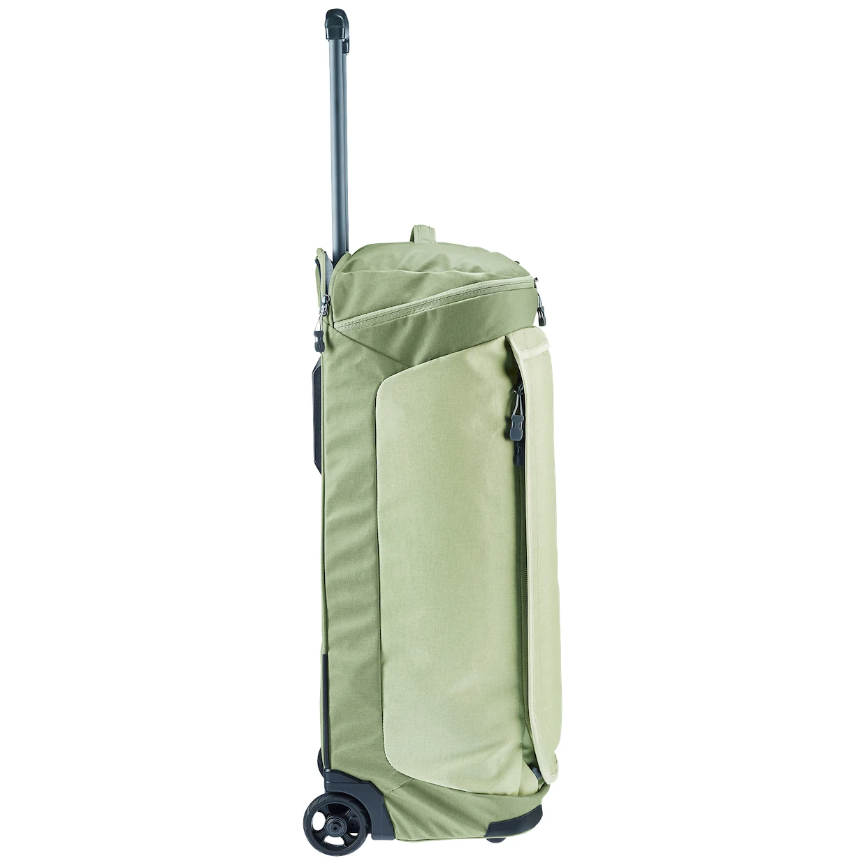 Materiał to bardzo wytrzymały poliester 600D z powłoką TPU chroniącą zawartość przed wilgocią i brudem. U podstawy torby znajdują się wzmocnione krawędzie. Kółka są bardzo ciche i w razie potrzeby można je wymienić.
