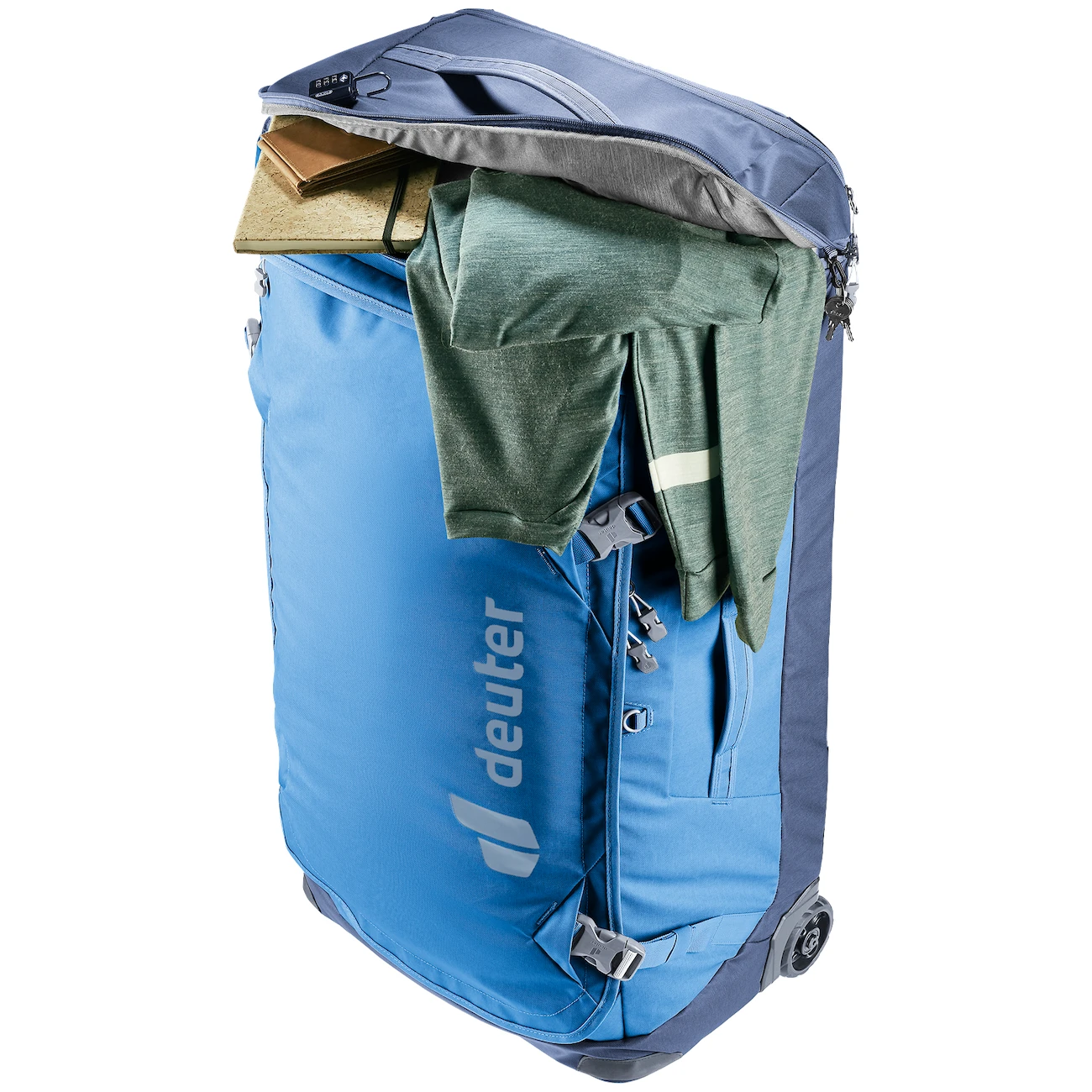 Walizka podróżna Duffel Pro Movo 90 od producenta Deuter spodoba się osobom lubiących aktywny wypoczynek, podróżujących w różnych warunkach. Łączy w sobie klasyczną walizkę z kółkami i teleskopową rączką oraz plecak z wysokiej jakości i dobrze wyściełanymi paskami na ramiona, które można błyskawicznie schować. Posiada również solidne uchwyty ułatwiające przenoszenie.