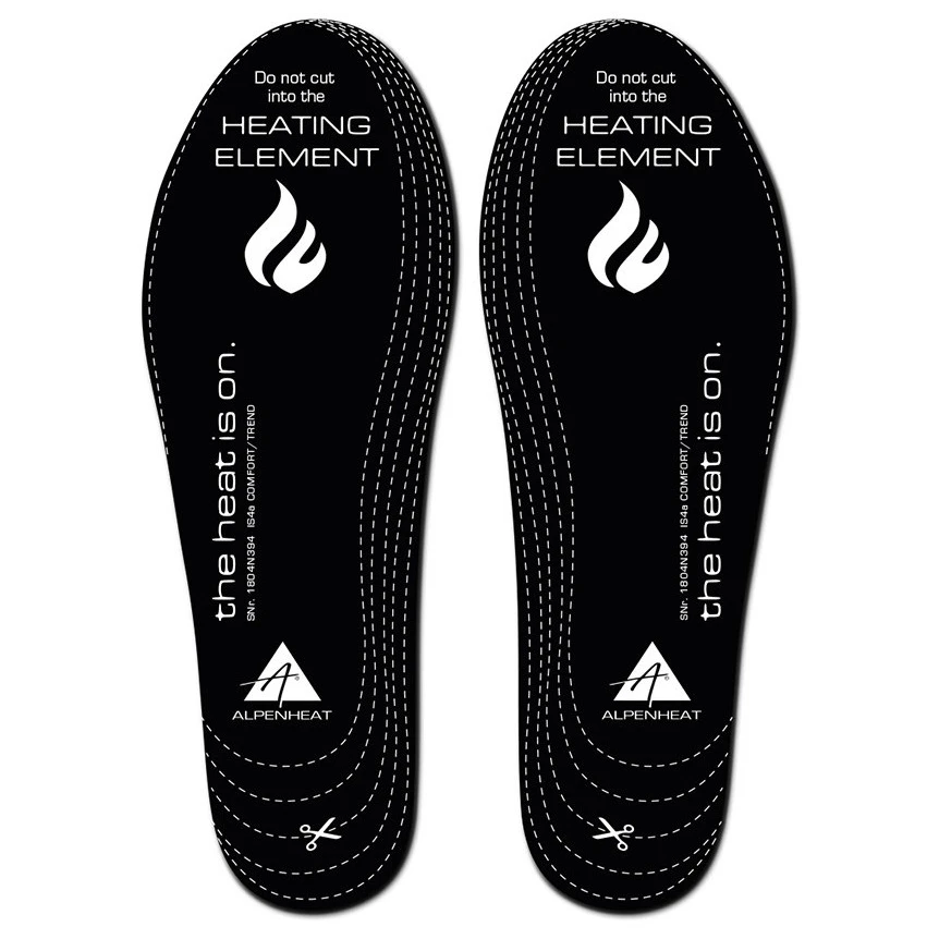 Podgrzewane wkładki do butów Trend marki Alpenheat są idealne na chłodne dni. Element grzewczy znajduje się pod palcami i jest zasilany akumulatorem lub bateriami AA, z którymi łączy go chroniony kabel z końcówką. Akumulator można przymocować do buta za pomocą paska z rzepem lub do paska przy butach narciarskich. Czas ogrzewania wynosi ponad 16 godzin w zależności od wybranych baterii i stopnia mocy.