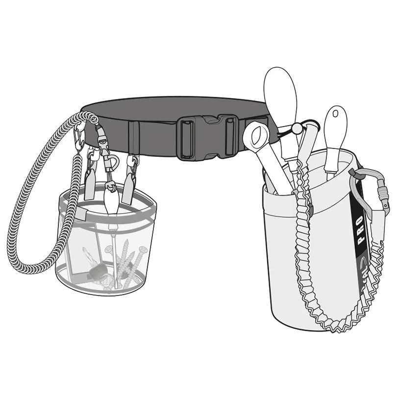 - 2 małe karabińczyki do przymocowania do fotela roboczego lub uprzęży roboczej