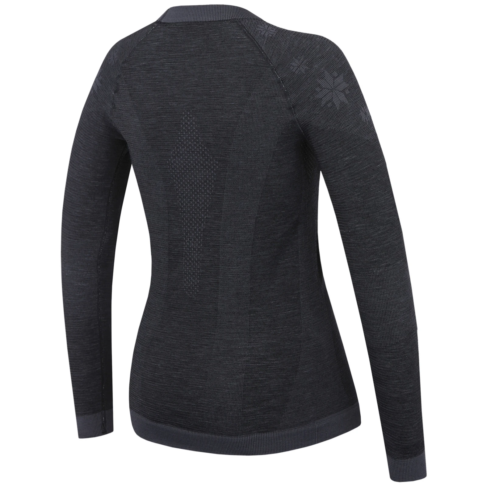 Wełna merino pomaga utrzymać ciepło ciała nawet po lekkim zawilgoceniu, podczas gdy włókna syntetyczne wspierają szybsze schnięcie i większą odporność materiału. Bezszwowa konstrukcja w obszarze tułowia minimalizuje tarcie i zwiększa komfort podczas dłuższego noszenia.