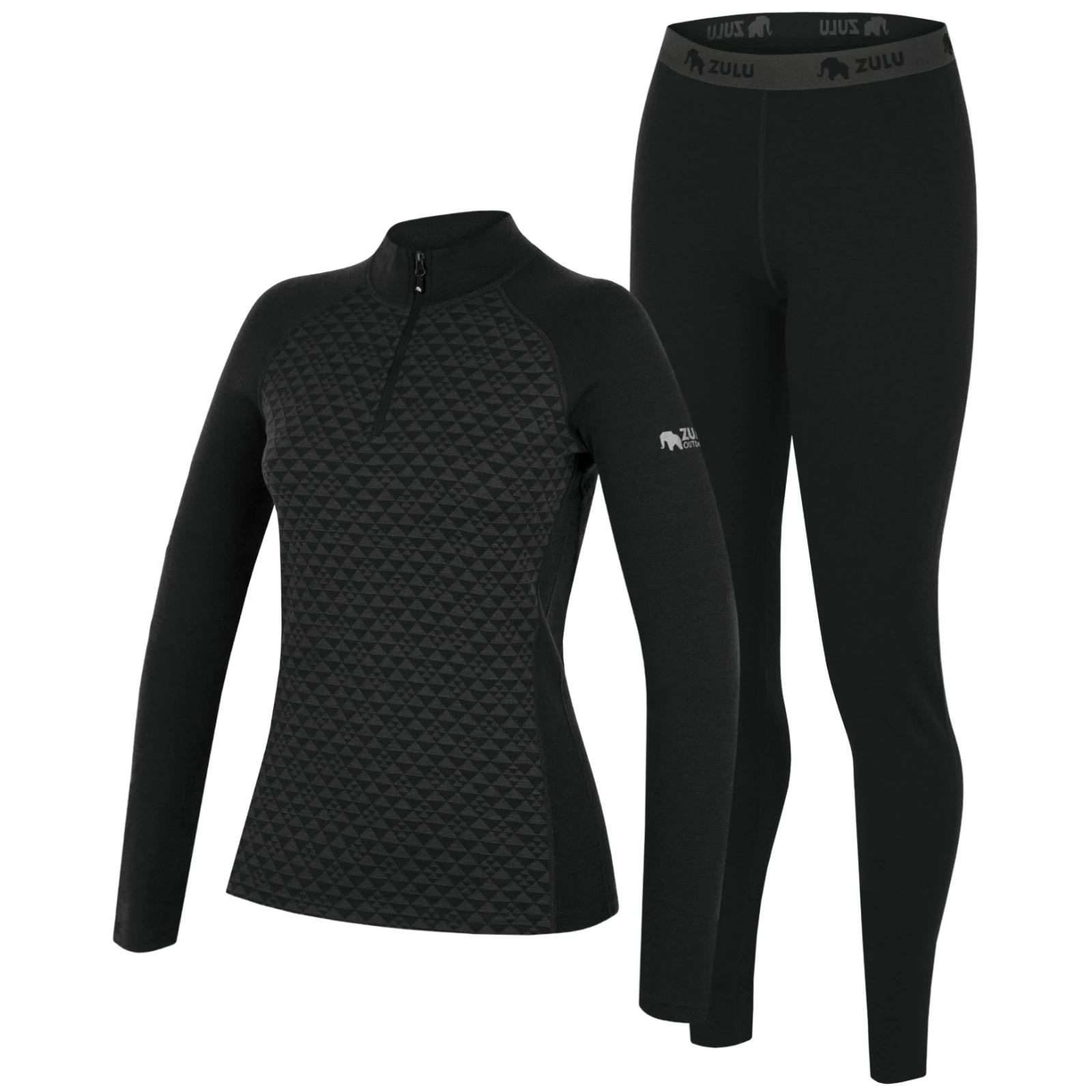 Zestaw damski Zulu Merino 240 ma doskonałe właściwości termoregulacyjne dzięki wełnie merynosów i eliminuje nieprzyjemne zapachy z ruchu. Docenisz perfekcyjne wykonanie z dzianiny żakardowej i płaskie szwy, które zapobiegają otarciom skóry. Kalesony mają szeroki wygodny elastyczny pas, który nigdzie nie uciska. Dzięki wyższej gramaturze wełny merynosów (240 g) zestaw nadaje się do wszystkich zimowych aktywności .