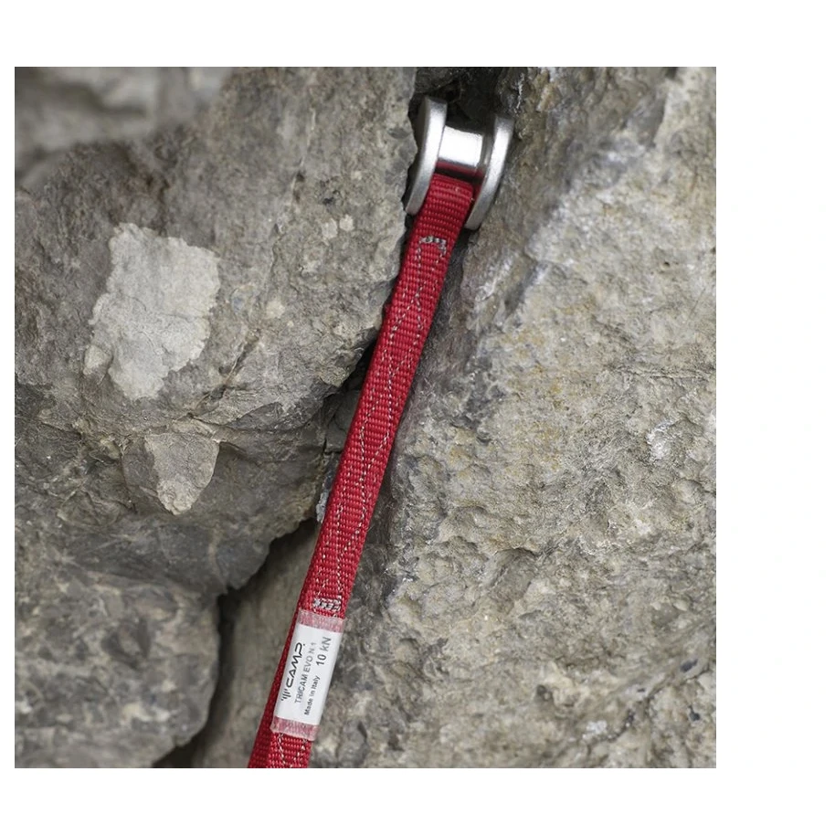 Zestaw klinów Camp Tricam Evo set należy do klasycznych akcesoriów każdego klasycznego wspinacza. Dzięki trójkątnemu kształtowi są bardzo uniwersalne i utrzymują się w poziomych szczelinach zarówno poziomo, jak i pionowo. Mogą być również używane do naprawiania dziur i miejsc, do których nic innego nie pasuje, lub oblodzonych połączeń. Są bardzo lekkie dzięki mocowaniu tylko na pętli. Dodatkowo, Smyczka jest wzmocniona szwem w górnej części, aby ułatwić zakładanie jedną ręką i zwiększa odporność na przetarcia o krawędzie. Oferuje aktywny i dwa pasywne sposoby osadzania. Drugie pasywne osadzenie jest możliwe dzięki wzmocnionej główce w kształcie klina i można go również osadzić na szerokość.