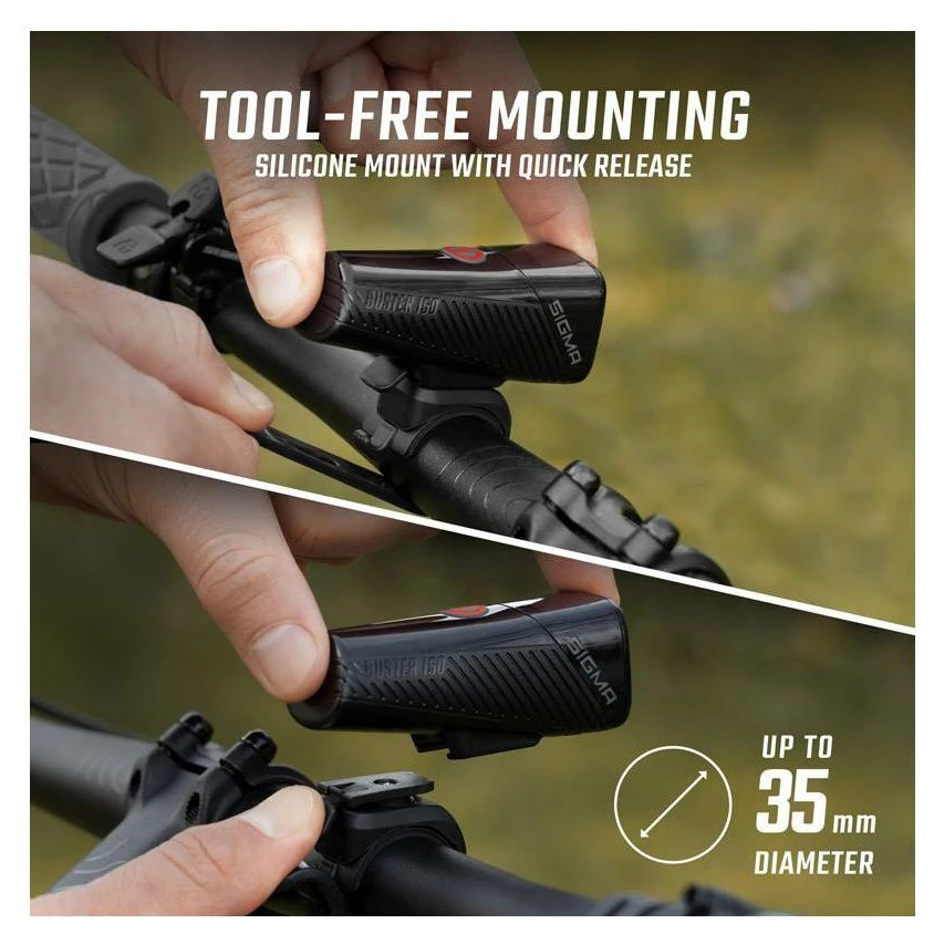 Sigma Buster 150 + Nyte 10 – wydajny i lekki zestaw lampek o długiej żywotności, z ładowaniem USB-C i łatwym montażem, zapewniający bezpieczną jazdę w dzień i w nocy.